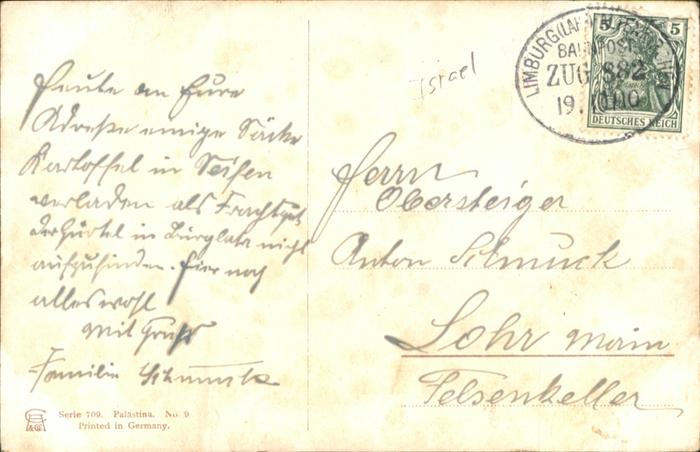 old postcard Jerusalem Yerushalayim Jerusalem Garten Gethsemane Garden Jardin Kuenstler F. Perlberg postalisch gelaufen