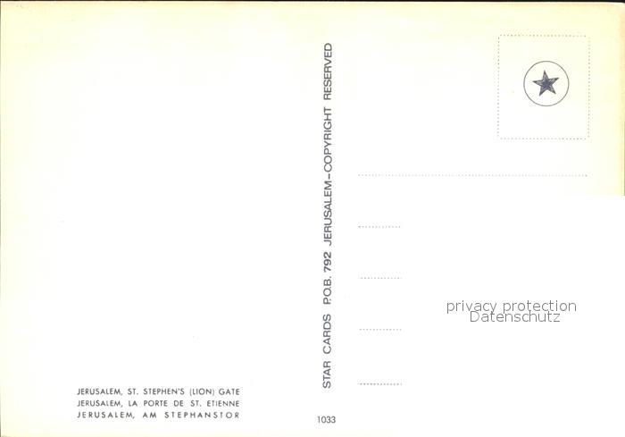 Jerusalem Yerushalayim Lions Gate postalisch nicht gelaufen Erhaltung siehe scans [WerneD78 kt116box]