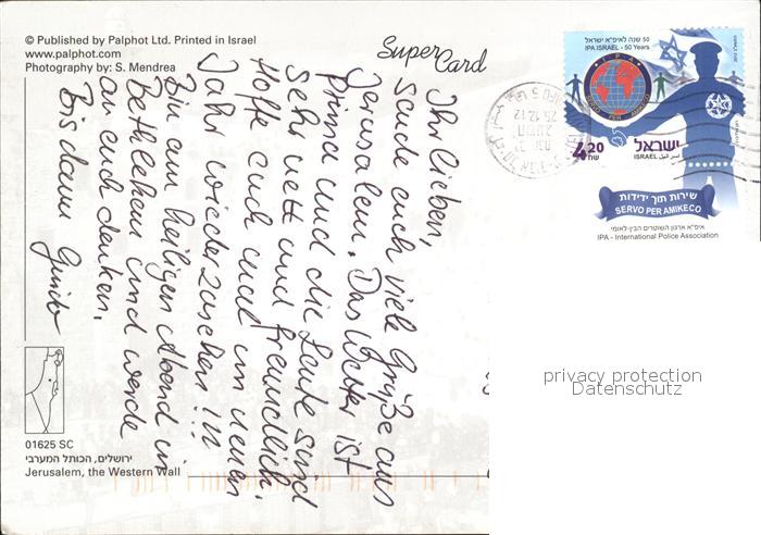 old postcard Jerusalem Yerushalayim The Western Wall Klagemauer postalisch gelaufen Erhaltung siehe scans