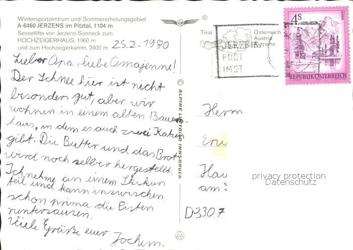 72103650 alte Postkarte Jerzens Hochzeigerhaus Skigebiet postalisch gelaufen Erhaltung siehe scans KatCode: 11390334070205