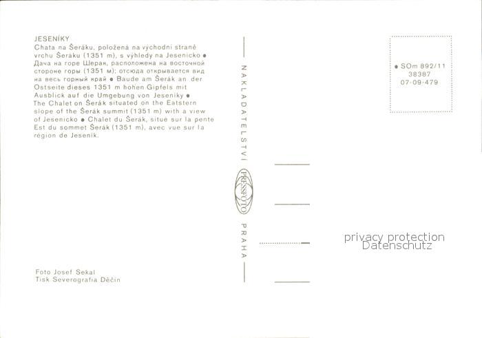 Jeseniky Chata na Seraku Baude postalisch nicht gelaufen Erhaltung siehe scans