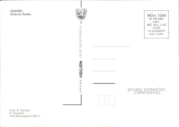 Jeseniky Chata Na Seraku Wandergebiet postalisch nicht gelaufen Erhaltung siehe scans