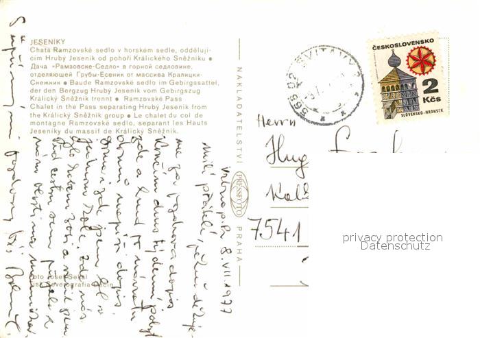 old postcard Jeseniky Chata Ramzovske sedlo postalisch gelaufen Erhaltung siehe scans [NatalD47]
