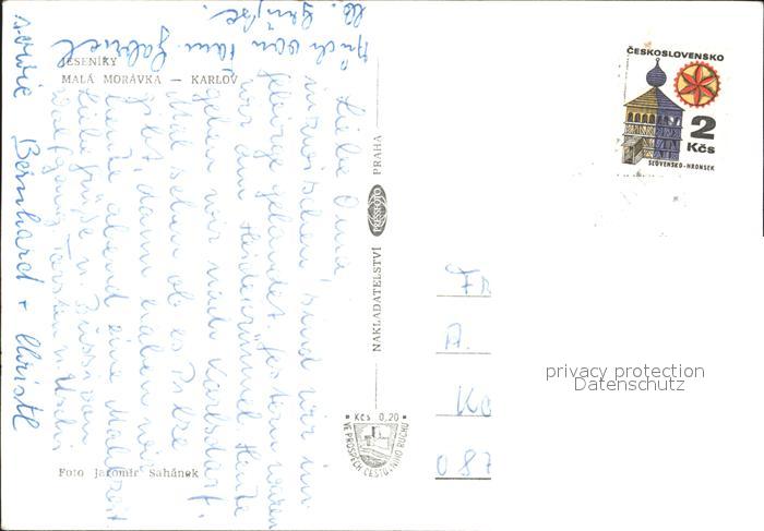 old postcard Jeseniky Gebirge Mala Moravka Karlov postalisch gelaufen Erhaltung siehe scans