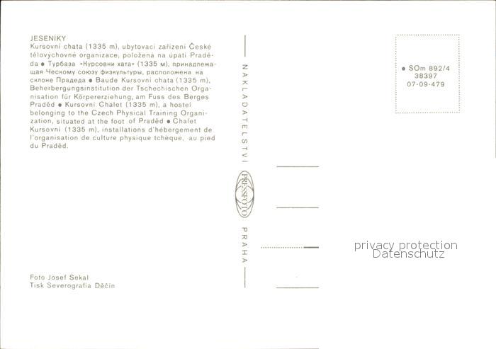 Jeseniky Kursovni chata Upati Pradeda Baude am Praded postalisch nicht gelaufen Erhaltung siehe scans