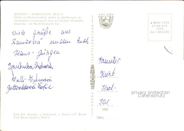 old postcard Jeseniky Ramzovske Sedlo postalisch gelaufen Erhaltung siehe scans