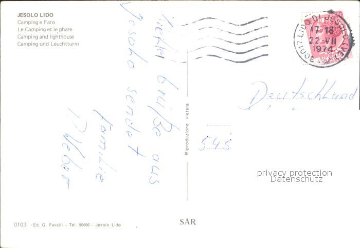 old postcard Jesolo Camping Strand Leuchtturm postalisch gelaufen Erhaltung siehe scans