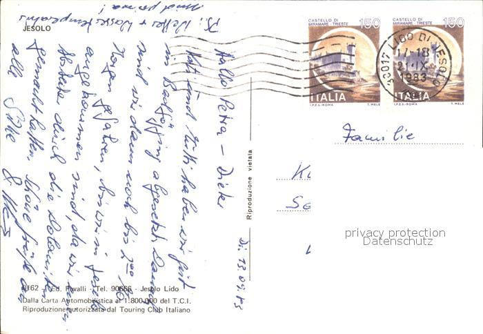old postcard Jesolo Gebietskarte Leuchtturm Fliegeraufnahme postalisch gelaufen Erhaltung siehe scans