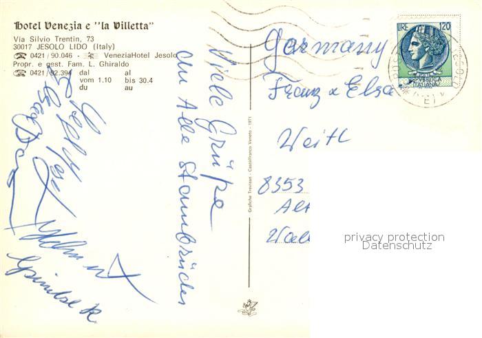 old postcard Jesolo Hotel Venezia e la Viletta postalisch gelaufen Erhaltung siehe scans [FriedD77]
