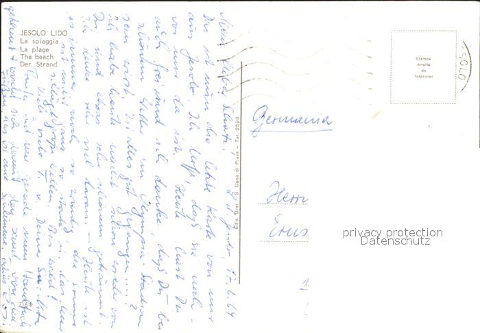 old postcard Jesolo La Spaggia Strand postalisch gelaufen Erhaltung siehe scans