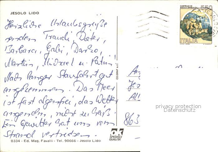 old postcard Jesolo Leuchtturm im Sonnenuntergang Strand postalisch gelaufen Erhaltung siehe scans