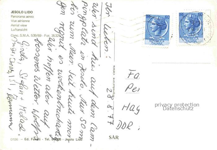 74023918 old postcard Jesolo Lido Iesolo Veneto IT Panorama Fliegeraufnahme postalisch gelaufen Erhaltung siehe scans [WerneD78] KatCode: 11240000000000