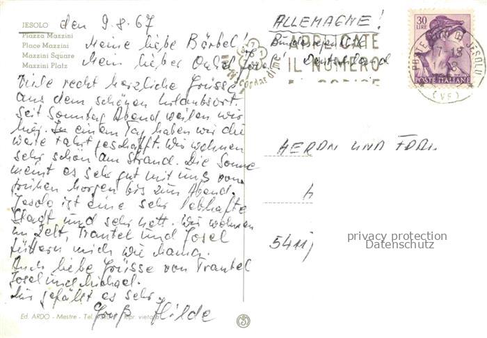 14114453 Jesolo Lido Iesolo Veneto IT Piazza Mazzini postalisch gelaufen Erhaltung siehe scans [FriedD77] old postcard Frie Katcode 11240000000000