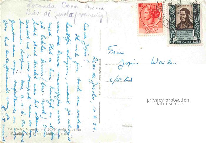 74022911 old postcard Jesolo Lido Iesolo Veneto IT Via Andrea Bafile postalisch gelaufen Erhaltung siehe scans [WerneD78] KatCode: 11240000000000