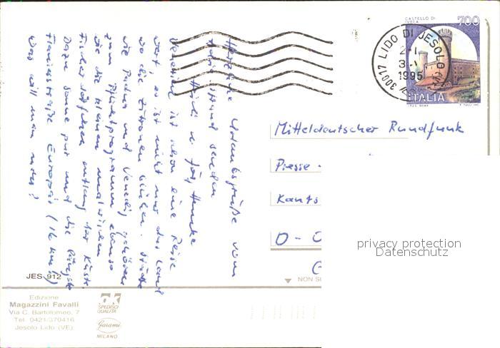 old postcard Jesolo Lido Jesolo Strand Segelboot postalisch gelaufen Erhaltung siehe scans