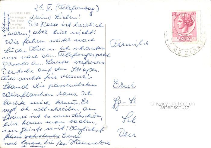 old postcard Jesolo Spiaggia Strand postalisch gelaufen Erhaltung siehe scans