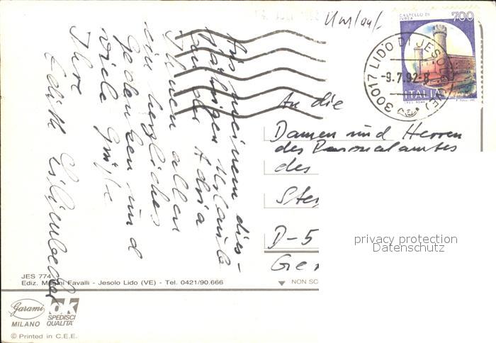 old postcard Jesolo Strand mit Leuchtturm postalisch gelaufen Erhaltung siehe scans