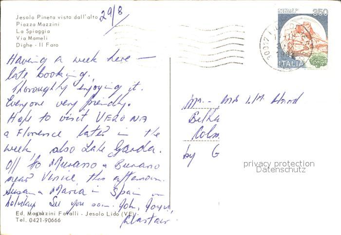 old postcard Jesolo Strand Piazza Mazzini postalisch gelaufen Erhaltung siehe scans