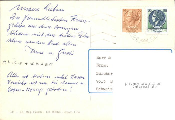 old postcard Jesolo Strand Wasserski postalisch gelaufen Erhaltung siehe scans