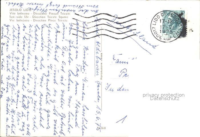old postcard Jesolo Vita balneare Direzione Piazza Trieste Spiaggia Strand Hotels postalisch gelaufen Erhaltung siehe scans