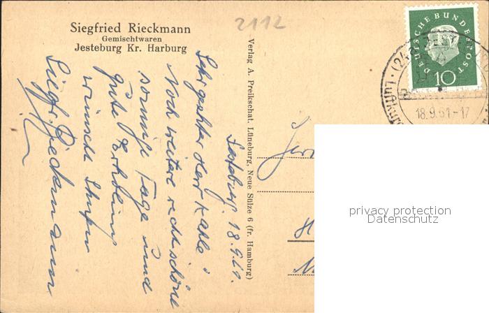 31704959 alte Postkarte Jesteburg Dorfstrasse Siegfried Rieckmann Gemischtwaren postalisch gelaufen Erhaltung siehe scans KatCode: 11110003353020