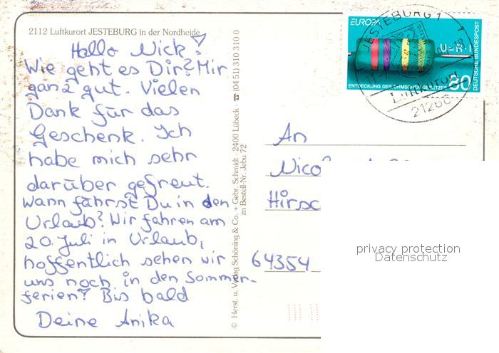 73081933 alte Postkarte Jesteburg Gemeindeverwaltung Hauptstrasse Alter Glockenturm Heimathaus Zehntscheune Stubbenhof Luftkurort Nordheide postalisch gelaufen Erhaltung siehe scans [FriedD77] KatCode: 11110003353020