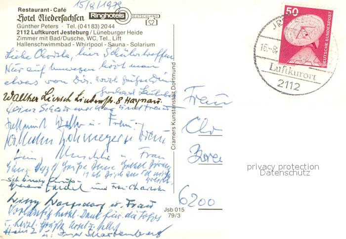 73615928 alte Postkarte Jesteburg Restaurant Cafe Hotel Niedersachsen postalisch gelaufen Erhaltung siehe scans [WerneD78] KatCode: 11110003353020