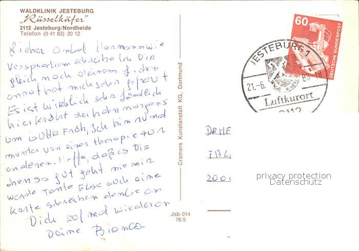 72279833 alte Postkarte Jesteburg Waldklinik Ruesselkaefer Fliegeraufnahme postalisch gelaufen Erhaltung siehe scans KatCode: 11110003353020