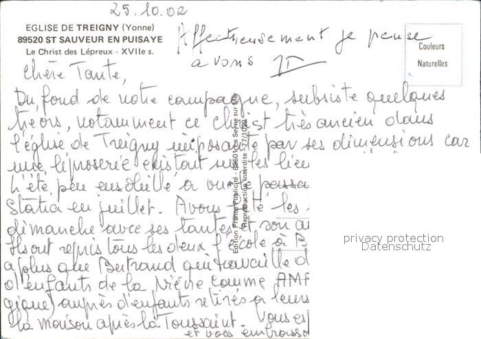 Jesus Christus Christentum Eglise de Treigny St. Sauveur en Puisaye Christ des Lepreux postalisch nicht gelaufen Erhaltung siehe scans