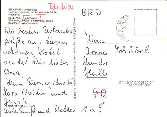 old postcard Jetrichovice Bellevue Weinstube Restaurant Schwimmbad postalisch gelaufen Erhaltung siehe scans