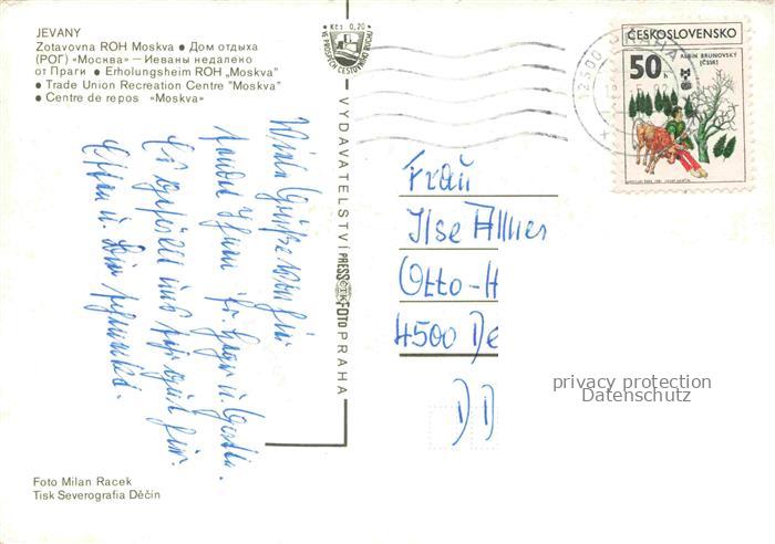 74022466 old postcard Jevany Czechia Erholungsheim ROH Moskva postalisch gelaufen Erhaltung siehe scans [FriedD77] KatCode: 11520