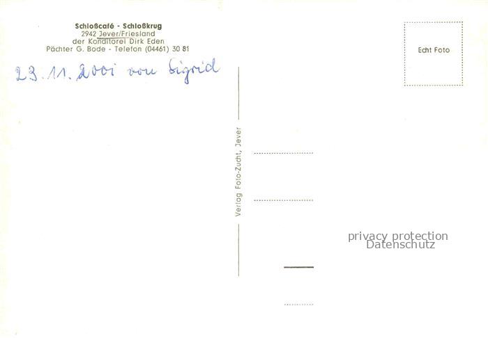 74150383 Jever Friesland Niedersachsen Schlosscafe Schlosskrug postalisch nicht gelaufen Erhaltung siehe scans [WerneD78] KatCode: 11110003455007