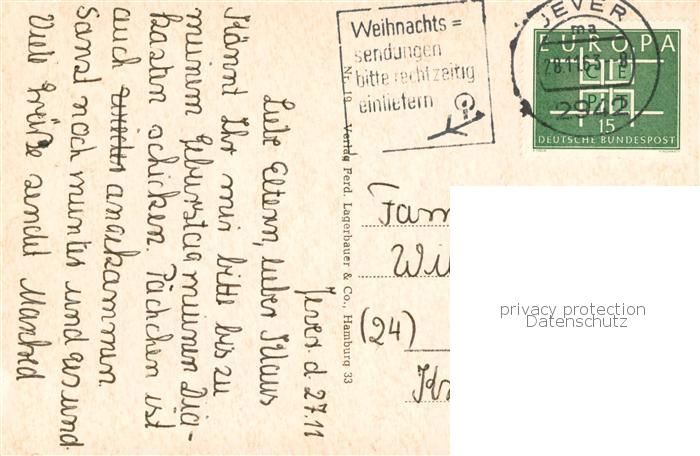 73832462 alte Postkarte Jever Kreisamt Elisabethufer Haus der Getreuen Schlossgraben Schloss Gymnasium Denkmal Neuestrasse postalisch gelaufen Erhaltung siehe scans [FriedD77] KatCode: 11110003455007