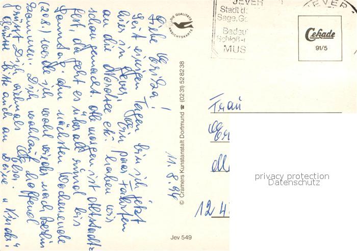 73615619 alte Postkarte Jever Schloss Markt Prinzengraft Muehlenmuseum Brauerei postalisch gelaufen Erhaltung siehe scans [WerneD78] KatCode: 11110003455007