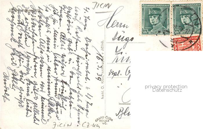 73850509 Jicin Jitschin CZ Namesti postalisch gelaufen Erhaltung siehe scans [WerneD78] old postcard Wern Katcode 11520
