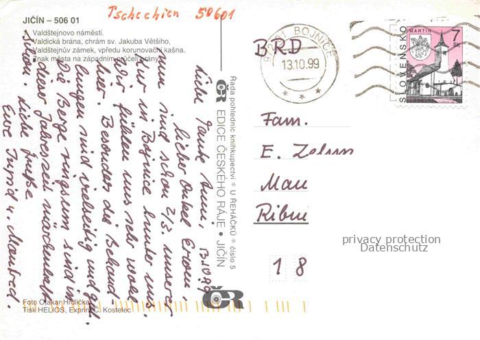 74006262 old postcard Jicin Jitschin Koeniggraetz CZ Valdstejnovo namesti Valdicka brana Zamek postalisch gelaufen Erhaltung siehe scans [FriedD77] KatCode: 11520