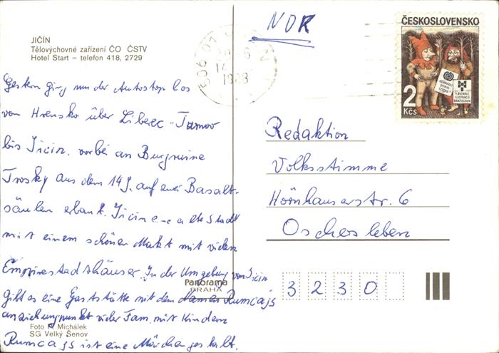 old postcard Jicin Sportovni Areal postalisch gelaufen Erhaltung siehe scans