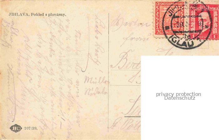 74008293 old postcard JIHLAVA Iglau CZ Pohled s plovárny postalisch gelaufen Erhaltung siehe scans [FriedD77] KatCode: 11520