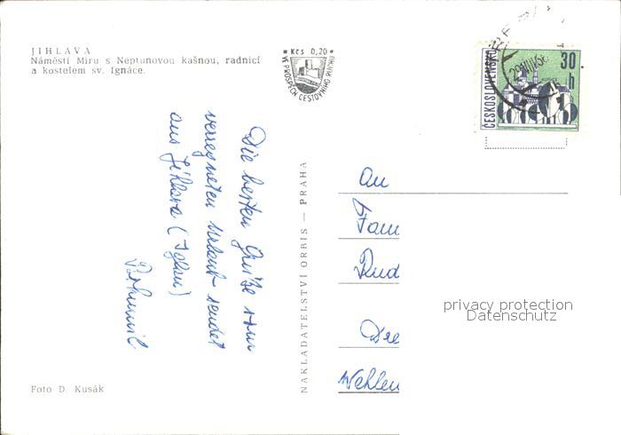 old postcard Jihlava Iglau Namensti Miru s Neptunovou kasnou postalisch gelaufen Erhaltung siehe scans