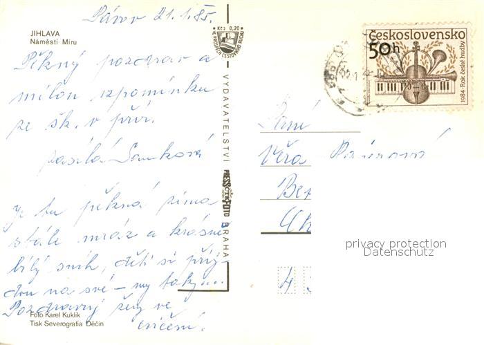 old postcard Jihlava Iglau Namesti Miru Stadtplan postalisch gelaufen Erhaltung siehe scans [WerneD78]