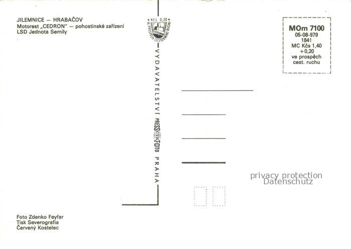 74137401 Jilemnice Hrabacov CZ Motorest Cedron pohostinske zarinzeniLSD Jednota Semily postalisch nicht gelaufen Erhaltung siehe scans [WerneD78] KatCode: 11520