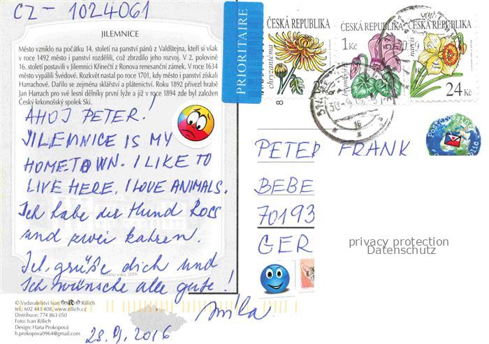 74006152 old postcard Jilemnice Hrabacov CZ Zvedava ulicka Zamek Radnice Masarykovo namesti postalisch gelaufen Erhaltung siehe scans [WerneD78] KatCode: 11520