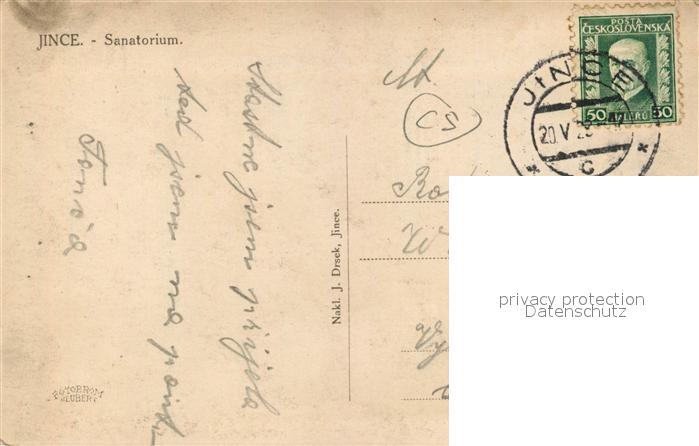 old postcard Jince Sanatorium postalisch gelaufen Erhaltung siehe scans [KathaD81]