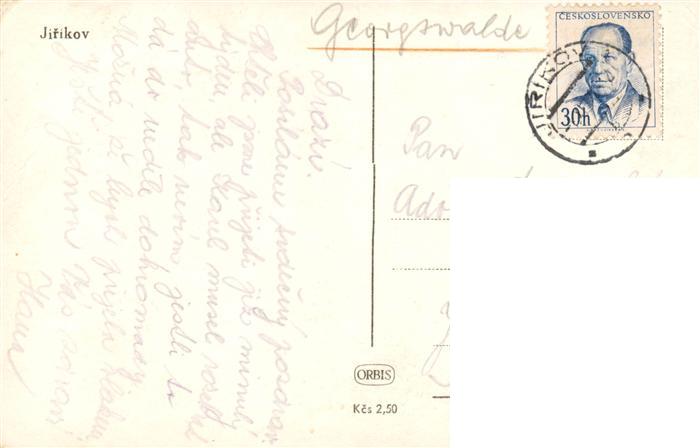 73958194 old postcard Jirikov Georgswalde CZ Stadtzentrum Kirche Denkmal postalisch gelaufen Erhaltung siehe scans [FriedD77] KatCode: 11520