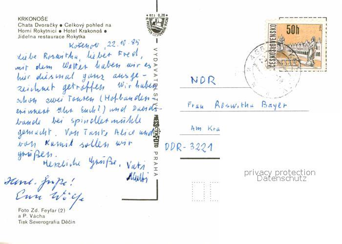 old postcard Jizerou Chata Dvoracky Horni Rokytnici Hotel Krakonos Restaurace Krkonose Riesengebirge postalisch gelaufen Erhaltung siehe scans [FriedD77]