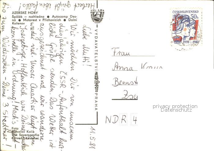 old postcard Jizerske hory postalisch gelaufen Erhaltung siehe scans