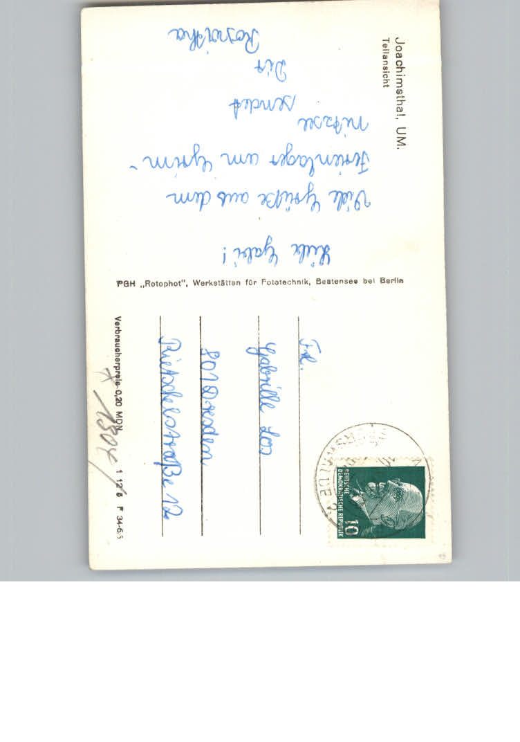 31177620 Joachimsthal postalisch nicht gelaufen KatCode: 11110012060100