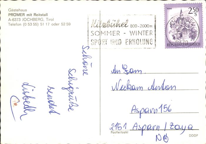 71431725 alte Postkarte Jochberg Gaestehaus Proemer mit Reitstall Pferde Ausritt im Schnee postalisch gelaufen Erhaltung siehe scans KatCode: 11390335070408