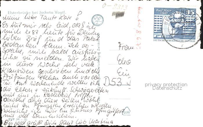 71831735 alte Postkarte Jocketa Elsterbruecke postalisch gelaufen Erhaltung siehe scans KatCode: 11110014178490