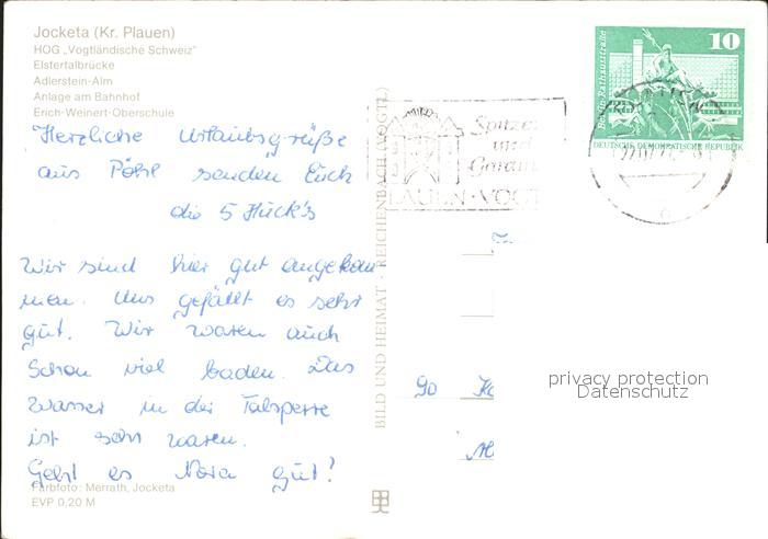 72310732 alte Postkarte Jocketa Eltertalbruecke Adlerstein-Alm Bahnhof postalisch gelaufen Erhaltung siehe scans KatCode: 11110014178490